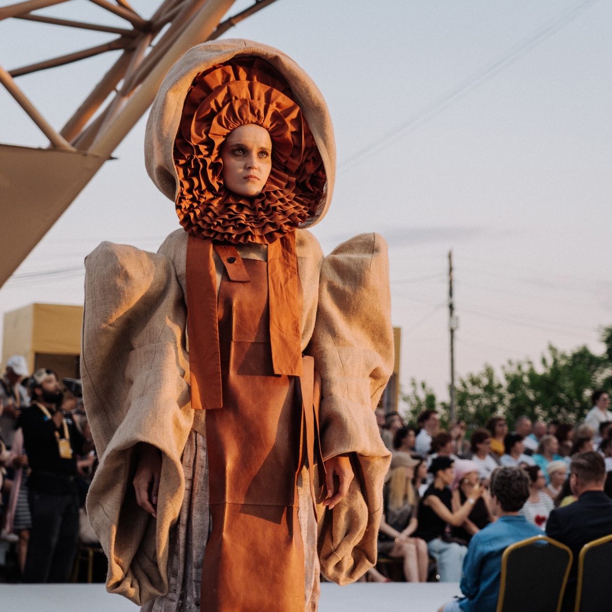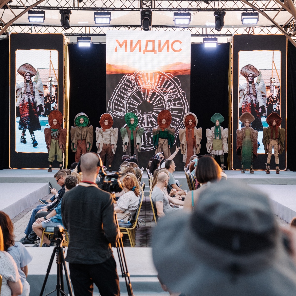 Но нас интересует коллекция «Аркаим», которую создали педагоги Международного института дизайна и сервиса. Основную работу по созданию образов взяла на себя Яна Нездомина, доцент кафедры дизайна, рисунка и живописи. Коллекцию отшивали преподаватели кафедры. А наш нескучный ректор Максим Усынин написал одноимённый трек, под который ходили модели.